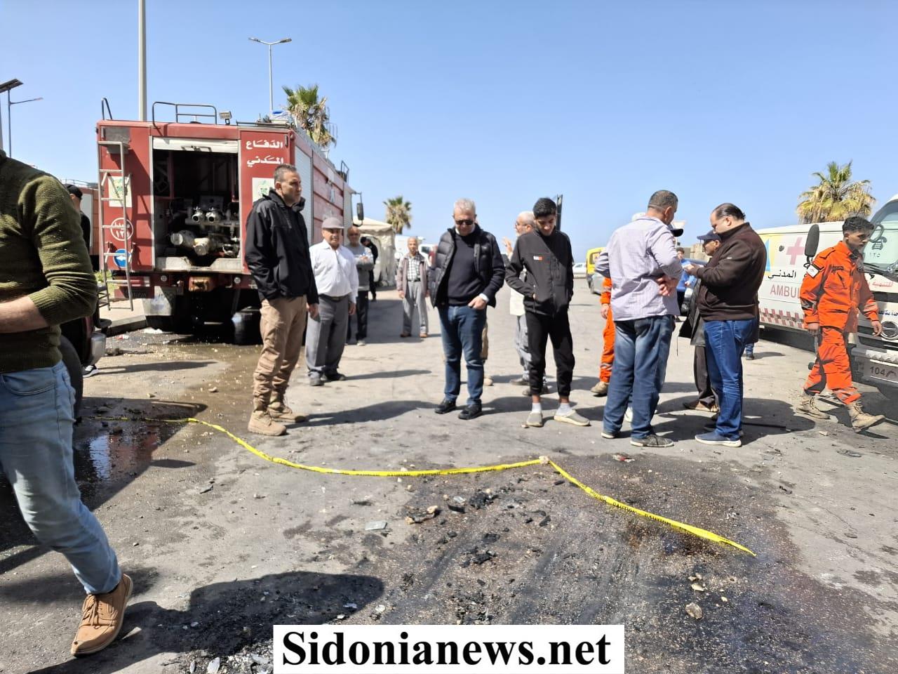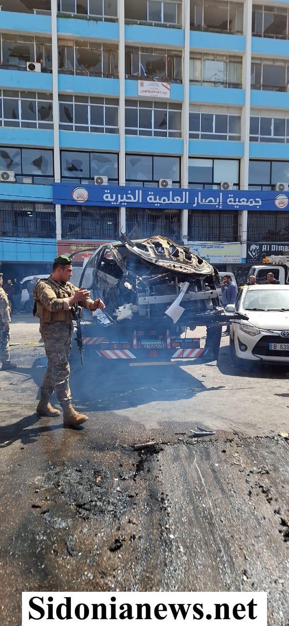 بالصور: رئيس بلدية صيدا حجازي تفقد مكان الغارة على السيارة المستهدفة في صيدا وفرق البلدية وشركة NTCC باشرتا رفع الركام وفتح الطريق
