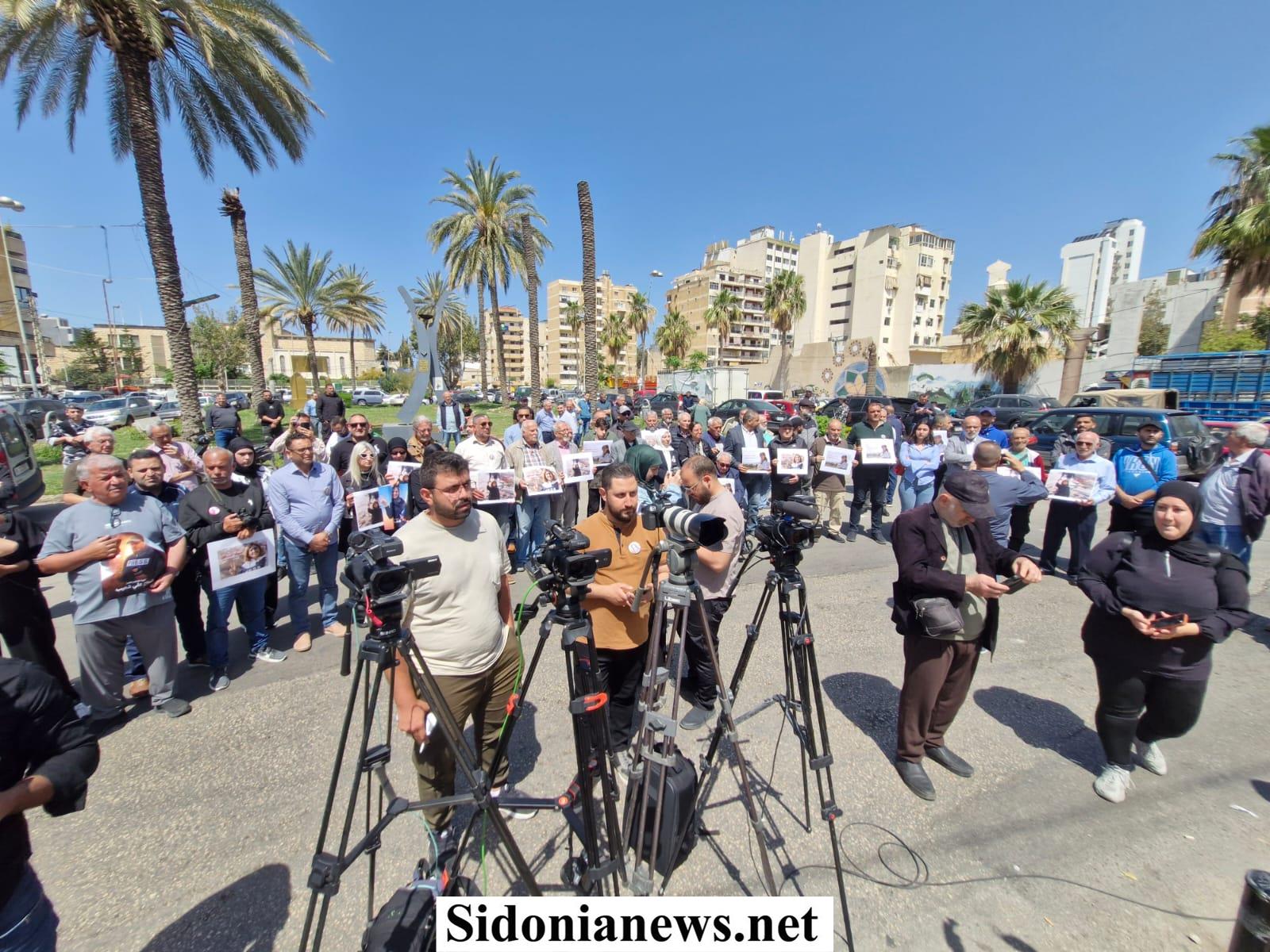 بالصور : إعلاميو صيدا والجسم الإعلامي وجهوا من ساحة الشهداء تحية إلى روح الإعلامية الشهيدة الزميلة آمال خليل منددين بجريمة إغتيالها المتعمد بغارة إسرائيلية