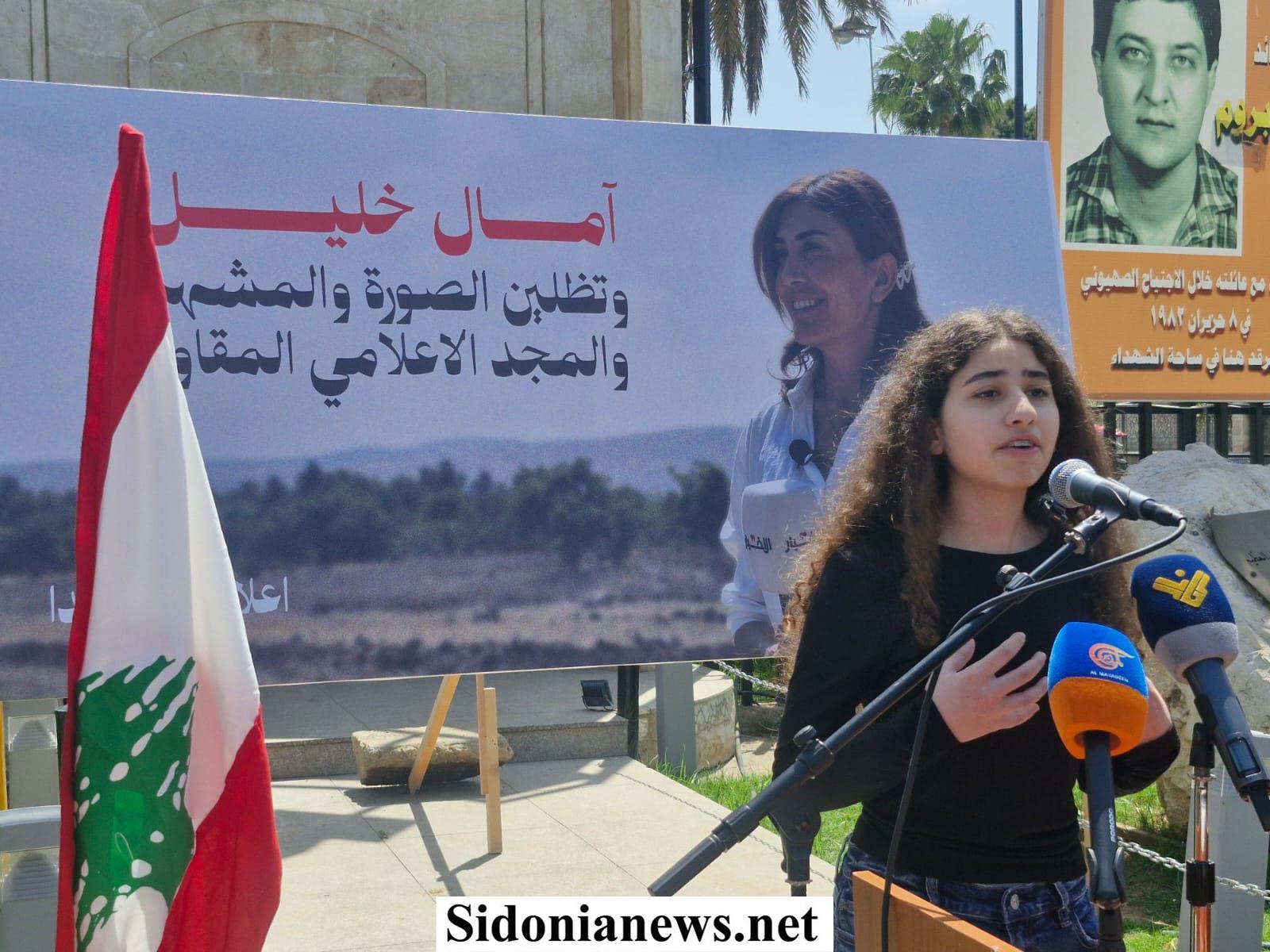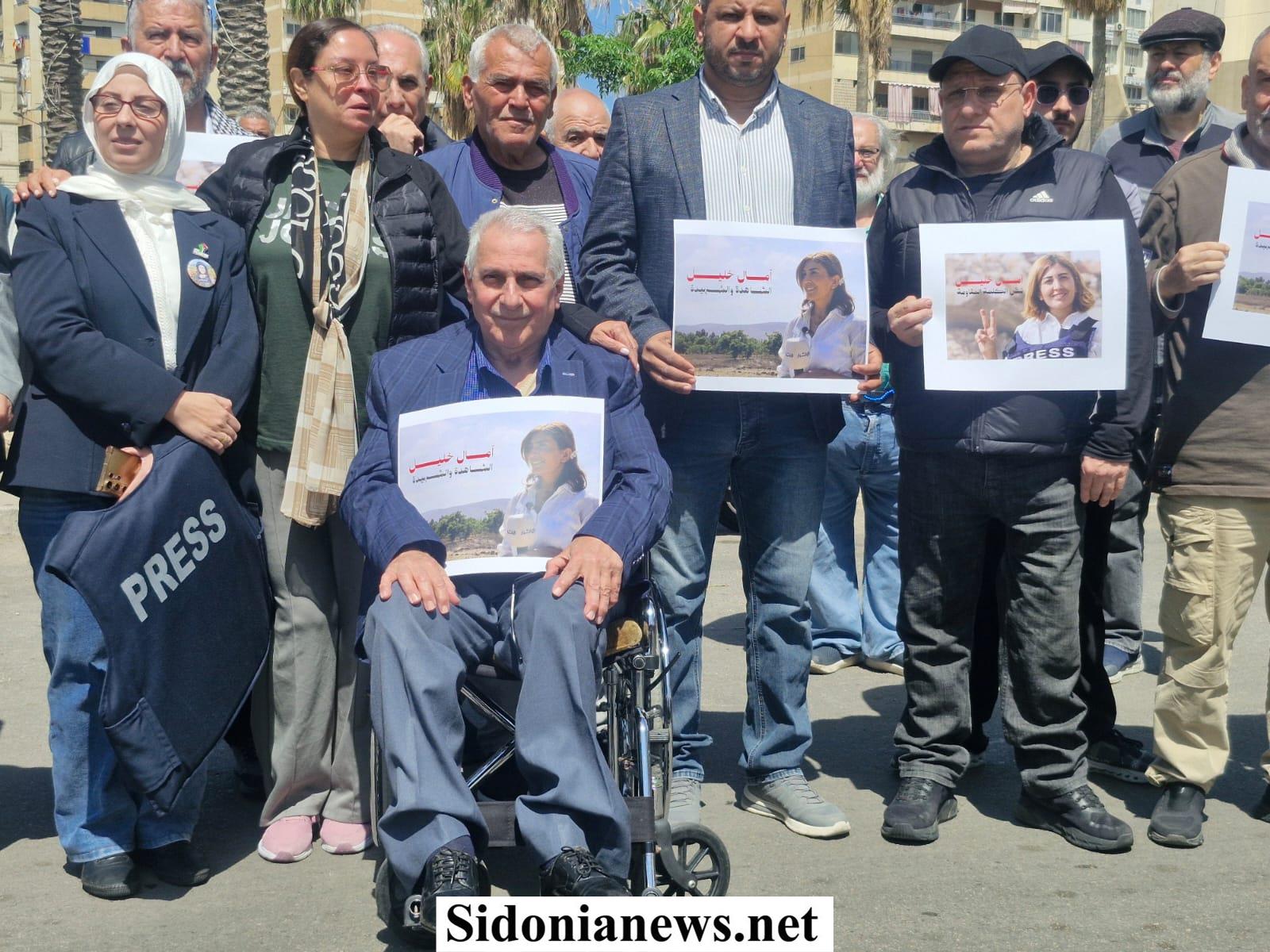 بدعوة من اعلاميي صيدا ومنطقتها ، نفذ القطاع الإعلامي ومعهم الجسم الإعلامي اللبناني الرسمي والنقابي ومختلف نقاباته وقطاعاته و اتحاداته إلى جانب الإعلام الإلكتروني والرقمي، وقفة تضامنية تحية لروح الزميلة الصحافية آمال خليل (مراسلة جريدة الأخبار) ، التي إغتالها الإحتلال الإسرائيلي بغارة جوية في بلدة الطيري خلال تأديتها لرسالتها الإعلامية ونقل الحقيقة وما يجري على أرض الجنوب من عدوان إسرائيلي وتدمير البلدات والقرى الجنوبية ومسح معالمها وتهجير سكانها .